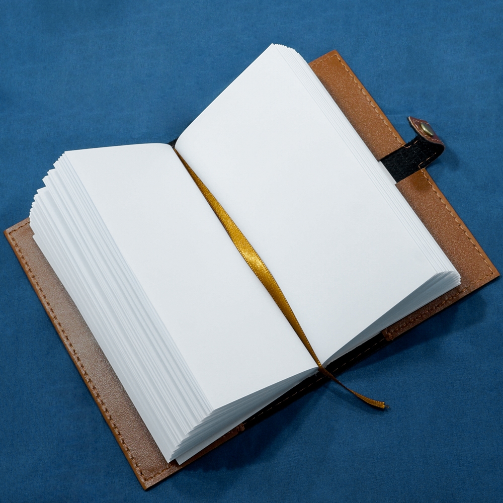 Bloco de anotações Bidins em couro sintético com plaquinha metálica para personalização Possui botão para lacre, parte interna com aproximadamente 70 folhas brancas sem pauta e marca página de cetim
