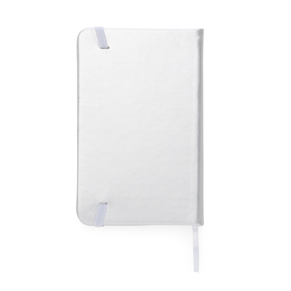 Caderneta tipo moleskine em couro sintético de frente e verso liso, marcador de página em cetim e fita elástica para fechar Contém aproximadamente 80 folhas amarelas pautadas