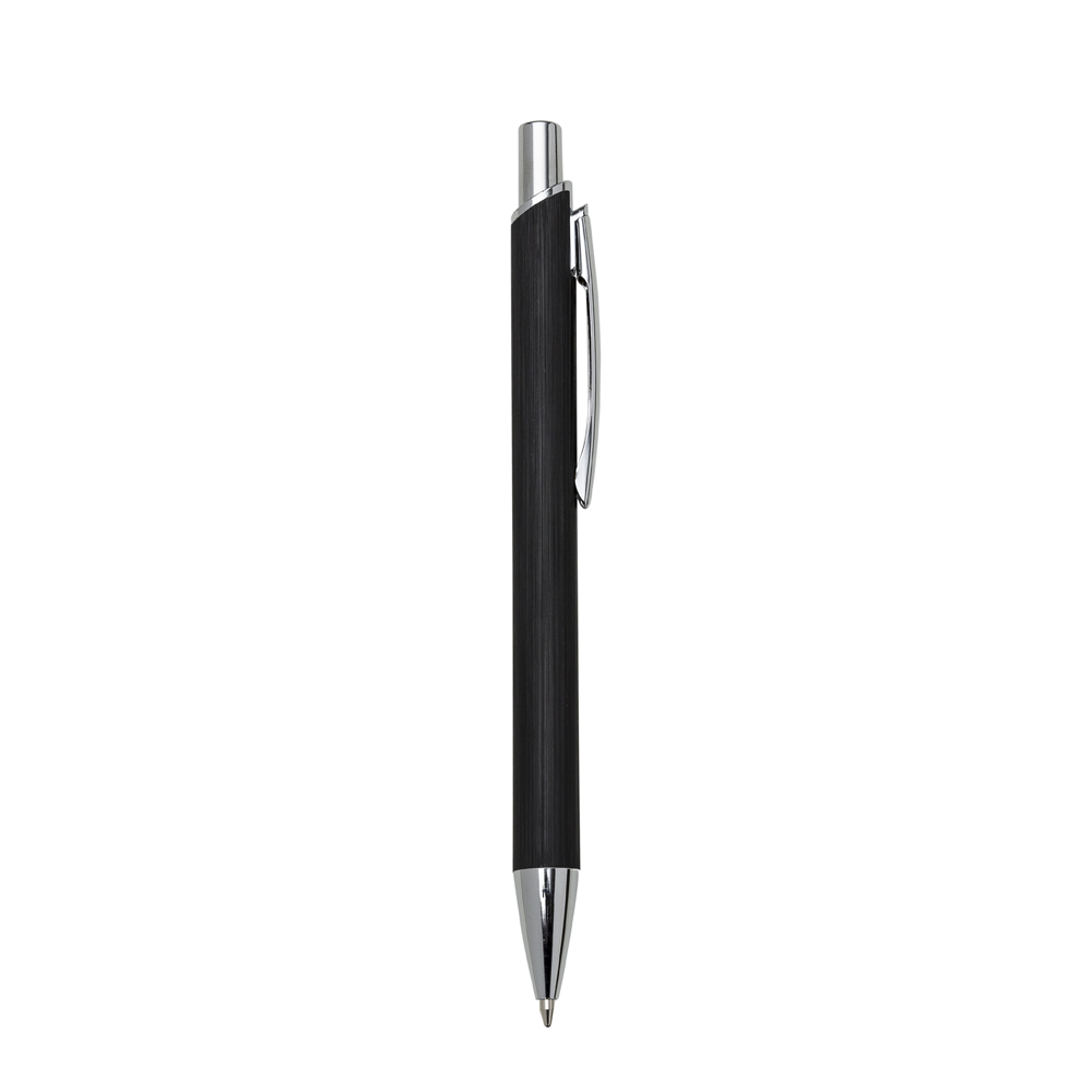 Caneta alumínio inteira colorida com detalhes prata, pintura tipo escovada Clip metal, acionador e ponteira prata Aciona por clique