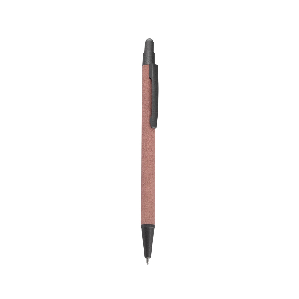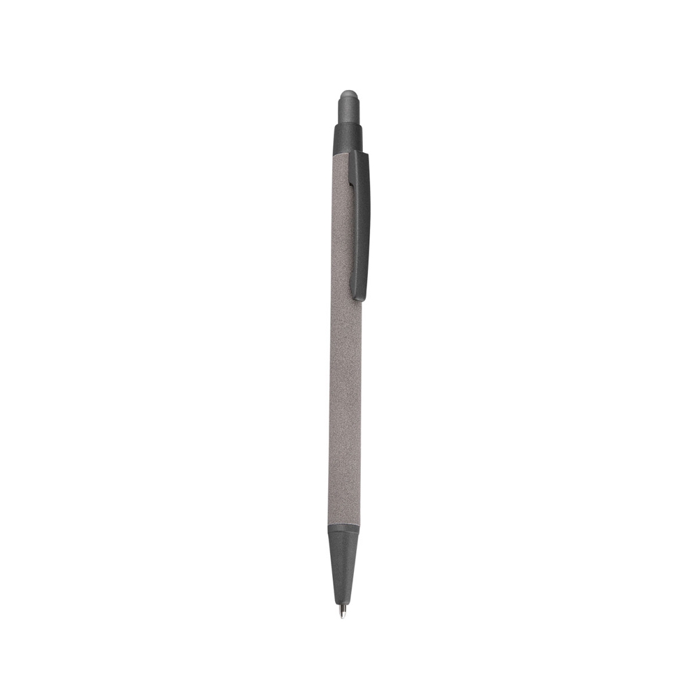 Caneta alumínio touch com pintura áspera colorida Possui clip metálico e borracha touch no acionador Acionada por clique