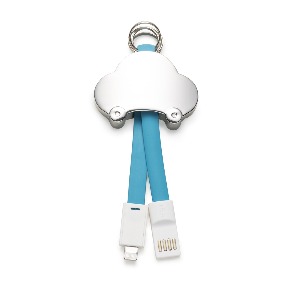 Chaveiro metal cabo de dados Iphone Possui quatro argolas,borracha azul com adaptador para Iphone e saída USB(detalhes brancos), apenas transfere dados Carro de metal espelhado liso de ambos lados PEDIDO APENAS MÚLTIPLO DE 12 PEÇAS!