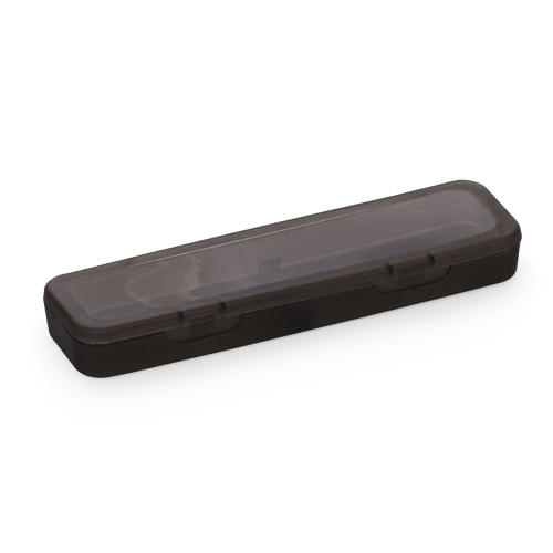 Estojo plástico para duas canetas, pintura fosca e apenas parte central da tampa transparente Possui dois suportes internos para fixar os itens OBS: PEDIDOS APENAS MÚLTIPLO DE 50 PEÇAS!