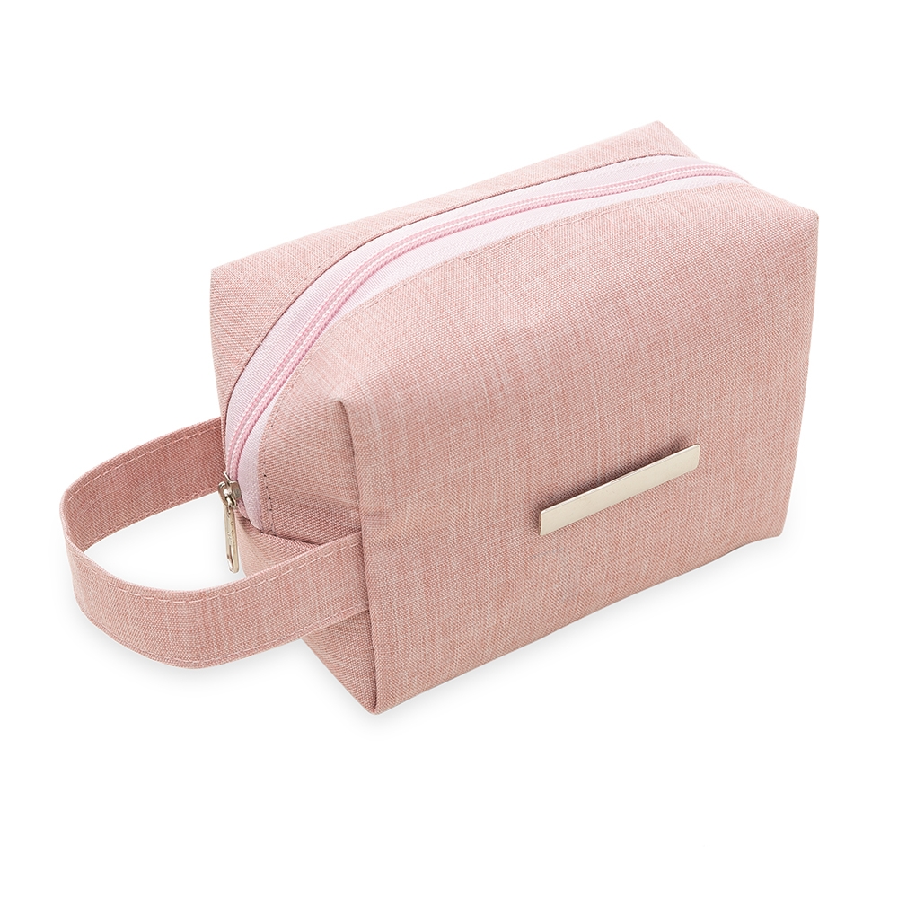 Necessaire puff de material sintético Jeans com alça, parte interna de acabamento forrado Acompanha plaquinha para personalização na área frontal