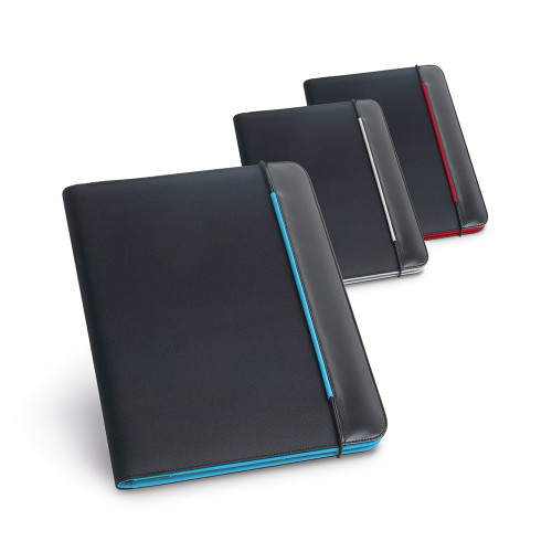 Pasta A4 C sintético e 800D poliéster Interior em microfibra Bloco: 20 folhas pautadas Esferográfica não inclusa